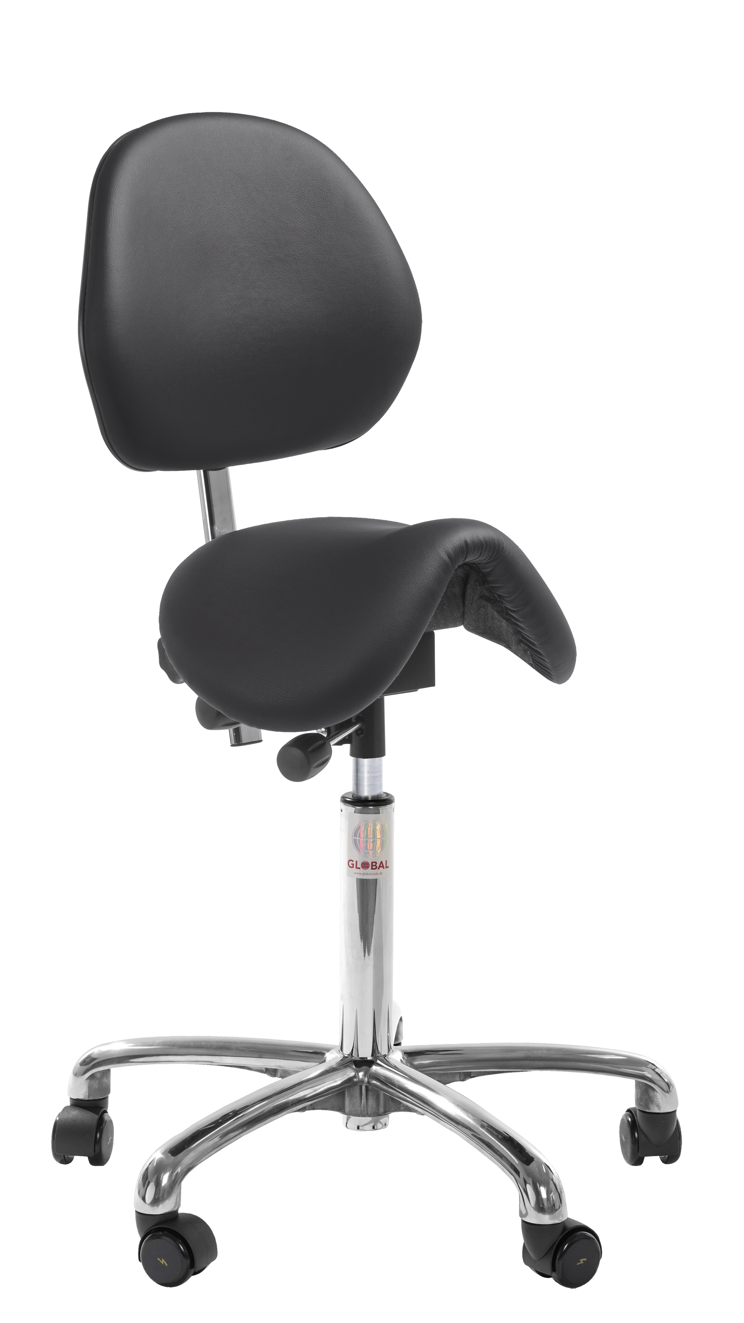 Den klassiske saddeludformning understøtter en naturlig, rank og afslappet siddestilling, hvor ryggen bevarer sin naturlige kurve. Samtidig sidder brugeren med relativt åbne vinkler i hofter og knæ, hvilket kan bidrage til reducerede spændinger og forbedret blodcirkulation. Sadelstolen giver desuden stor bevægelsesfrihed og gør det nemt at skifte arbejdsstilling i løbet af dagen. Ryglænet giver ekstra støtte til ryggen og øger komforten ved længere tids siddende arbejde.