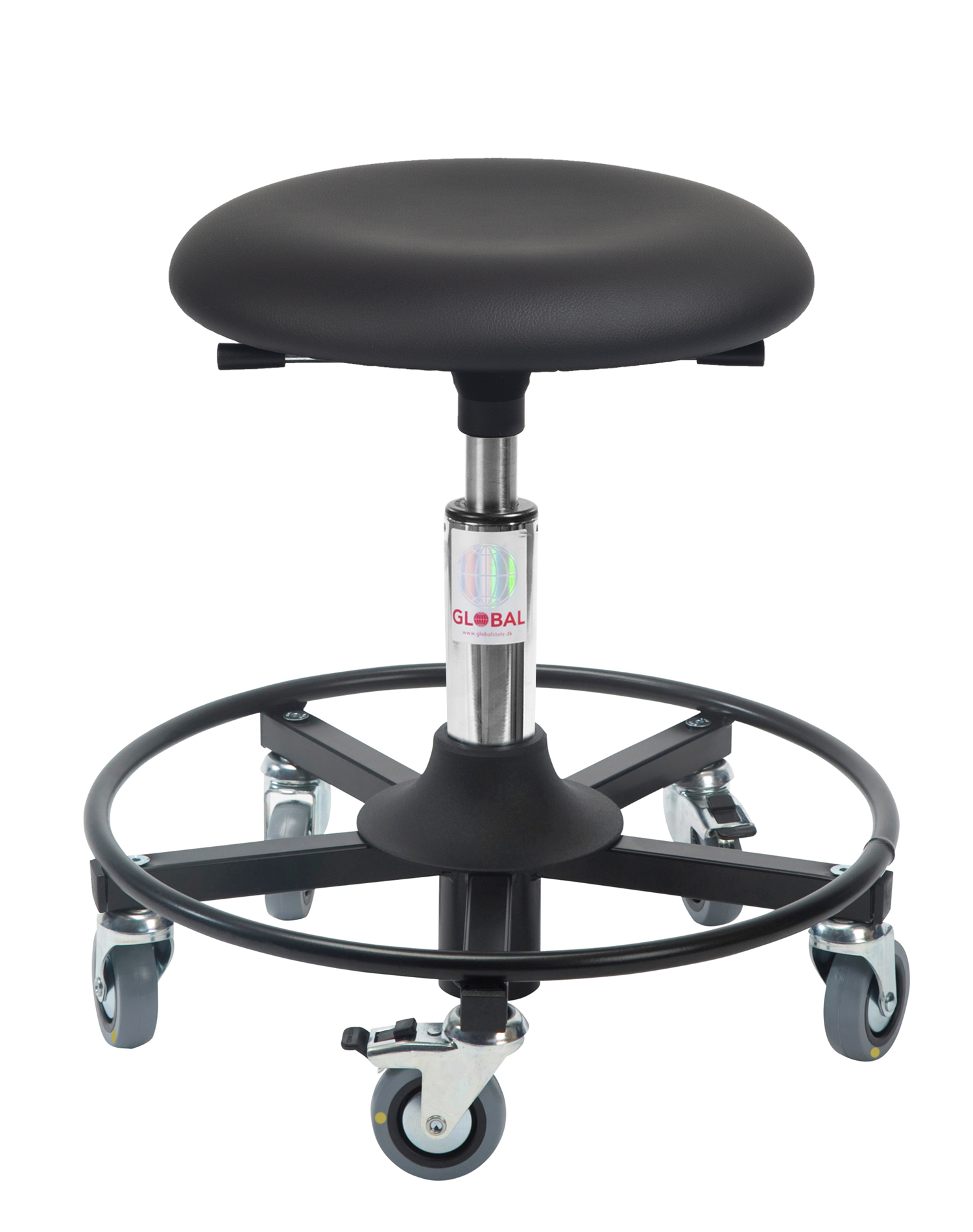 Denne montørstol er med stålfodkryds og 75 mm letløbende ESD hjul, hvoraf 2 har bremse.
