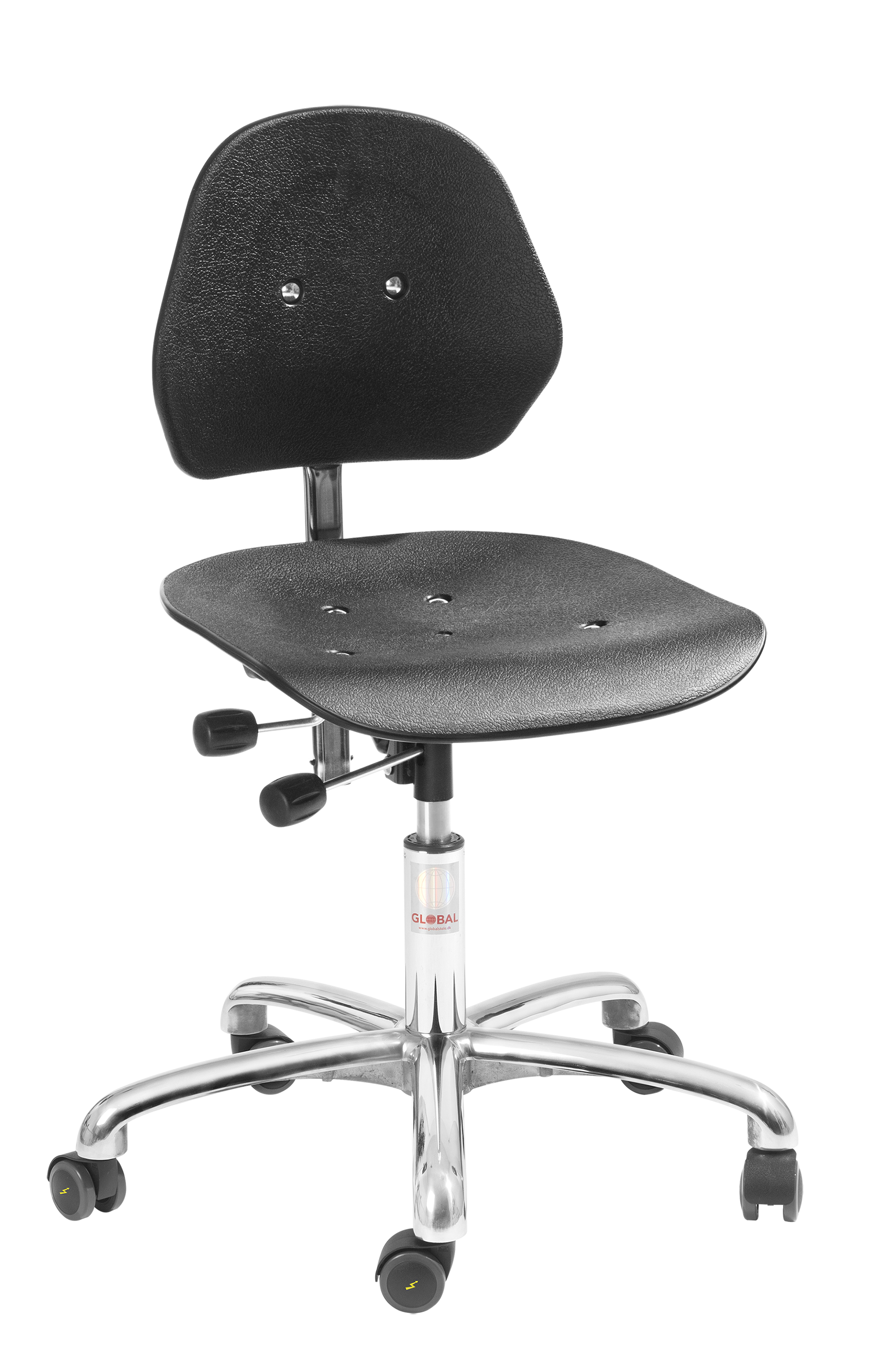 Denne stol er med 610 mm. alu base og 50 mm. letløbende ESD hjul.